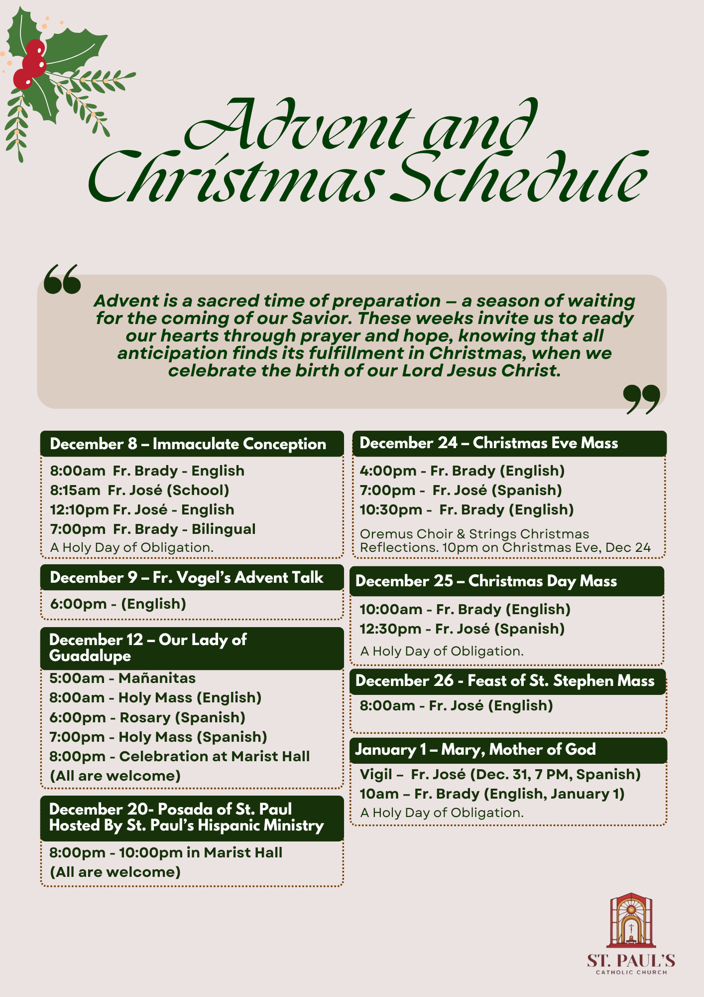 Reoccuring Events (St. Paul's Ministries)
